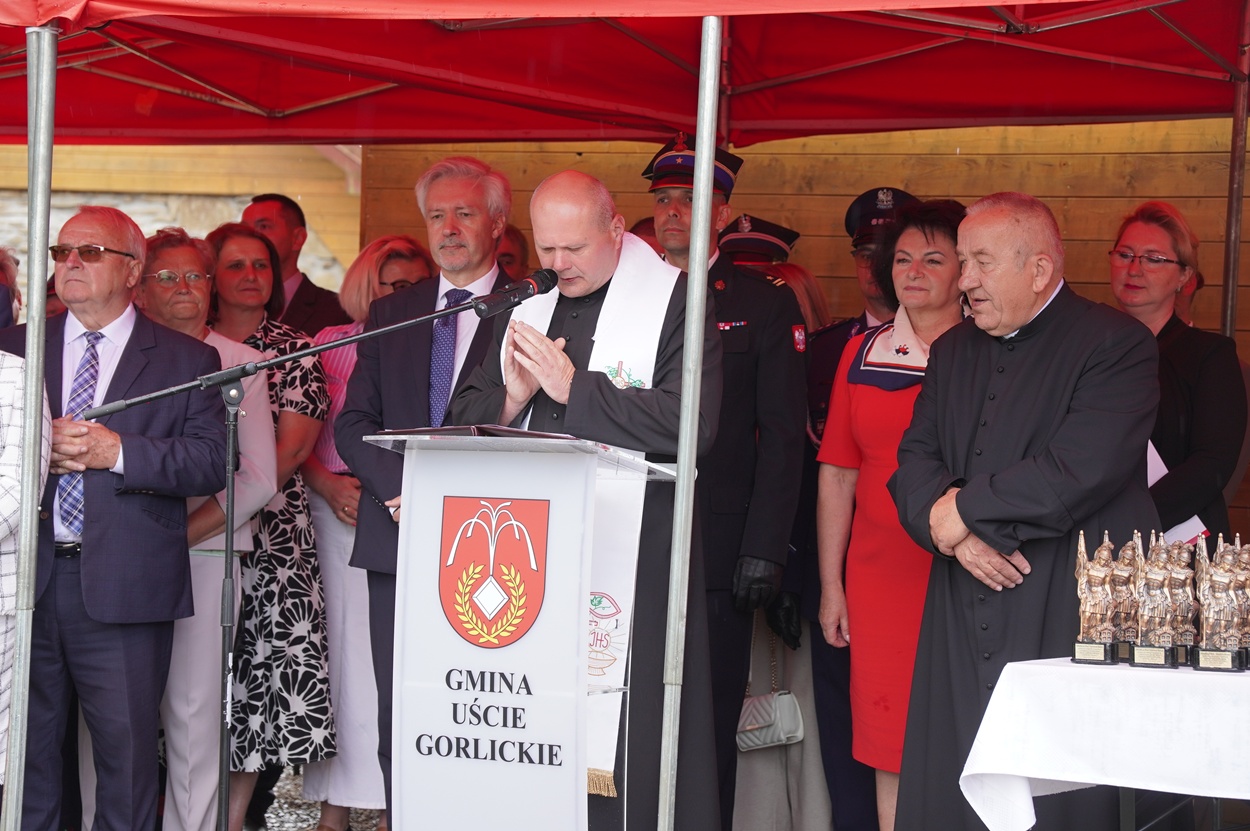 Świętowanie poprzedziła msza święta odprawiona w kościele p.w. Św. Kosmy i Damiana w Banicy. Po niej uczestnicy przemaszerowali przed nowopowstały budynek, w którym mieści się siedziba strażaków. Tam meldunek o gotowości do przeprowadzenia uroczystego apelu Prezesowi Zarządu Oddziału Powiatowego Związku OSP RP w Gorlicach dh Przemysławowi Wszołkowi złożył Komendant Gminny Związku OSP RP w Uściu Gorlickim dh Marcin Kruczek. Następnie przybyłych gości przywitała Wójt Gminy Uście Gorlickie Ewa Garbowska-Góra.