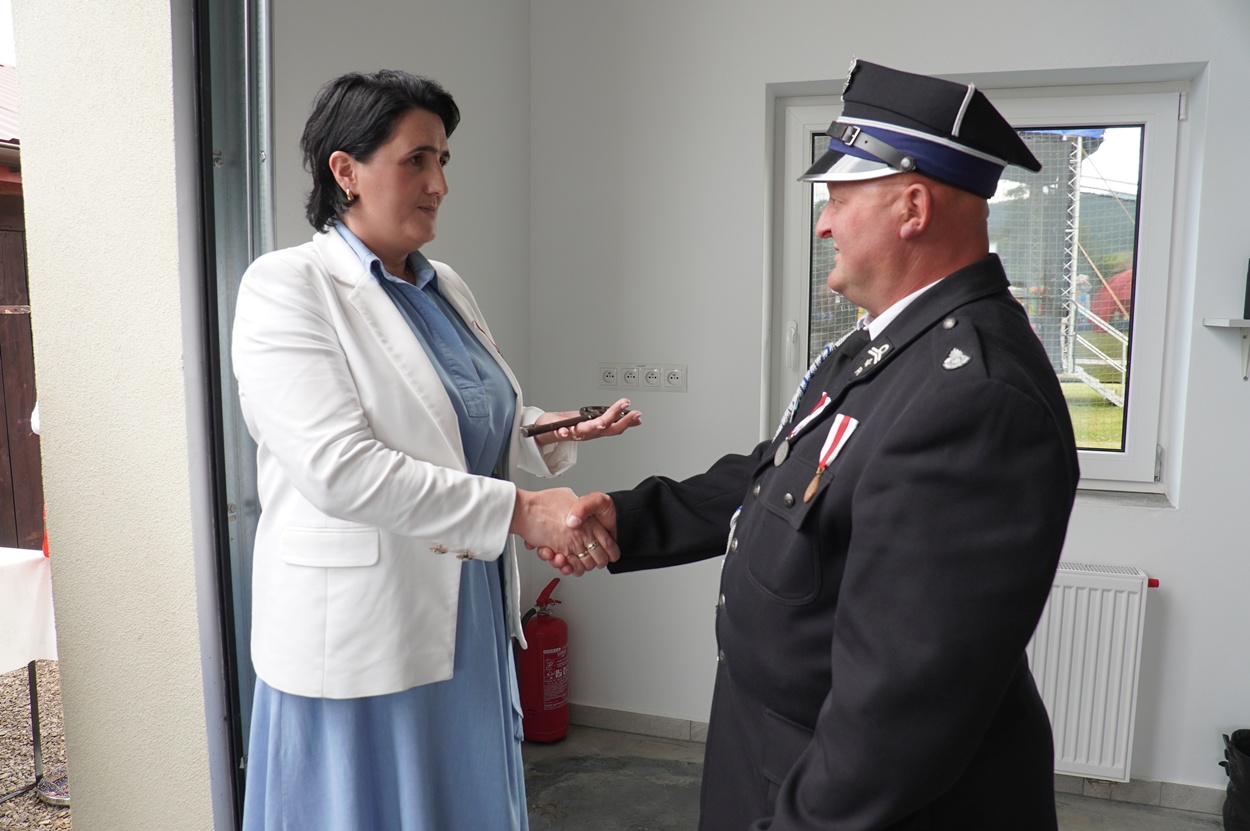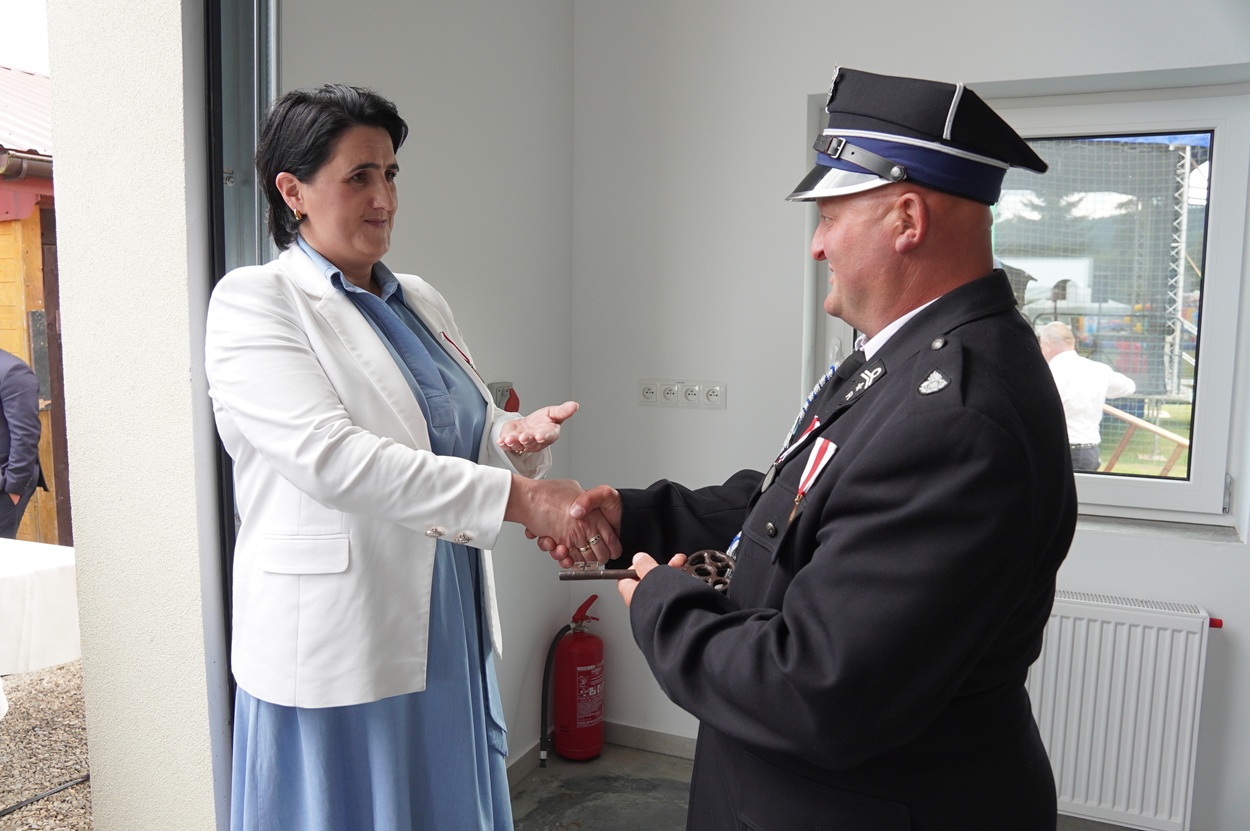 Symbolicznego przekazania kluczy do nowopowstałego budynku dokonała Wójt Gminy Uście Gorlickie Ewa Garbowska-Góra. W imieniu strażaków Ochotniczej Straży Pożarnej w Banicy klucze do remizy odebrał Prezes Krzysztof Nowak.
