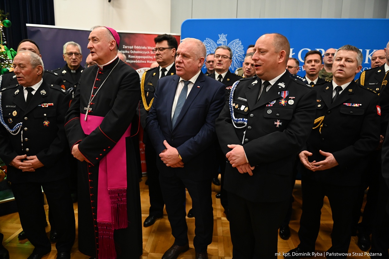 W niedzielę 21 grudnia 2025 roku, w auli im. śp. Wiesława Wody w delegaturze Małopolskiego Urzędu Wojewódzkiego w Tarnowie na Wojewódzkim Spotkaniu Opłatkowym Strażaków spotkali się druhny i druhowie Ochotniczych Straży Pożarnych a także funkcjonariusze Państwowej Straży Pożarnej z całego województwa małopolskiego.