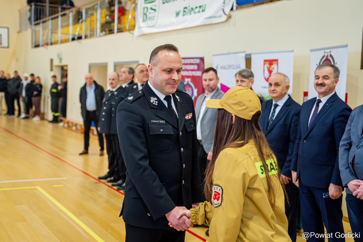 Młodzi strażacy z OSP Binarowa (gm. Biecz) i OSP Racławice (gm. Biecz) zwyciężyli w poszczególnych grupach w rozegranych w niedzielę 22 lutego 2026 roku na hali sportowej w Bieczu Powiatowych Halowych Młodzieżowych Zawodach Sportowo-Pożarniczych, których organizatorem był Zarząd Oddziału Powiatowego Związku OSP RP w Gorlicach. Wydarzenie zorganizowane zostało przy wsparciu finansowym Województwa Małopolskiego a także Powiatu Gorlickiego, Gminy Biecz, Banku Spółdzielczego w Bieczu i Uzdrowiska Wysowa.