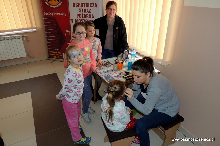 Na wszystkich, którzy tego dnia przybyli do remizy OSP Moszczenica podzielić się częścią siebie czekały liczne atrakcje i niespodzianki. Wśród nich m.in. malowanie twarzy dla dzieci, pamiątkowe statuetki, kubki, kalendarze, torby oraz pyszny posiłek regeneracyjny.