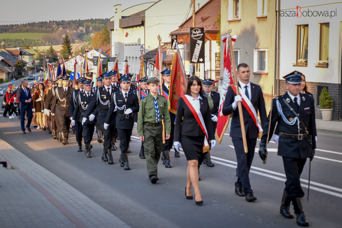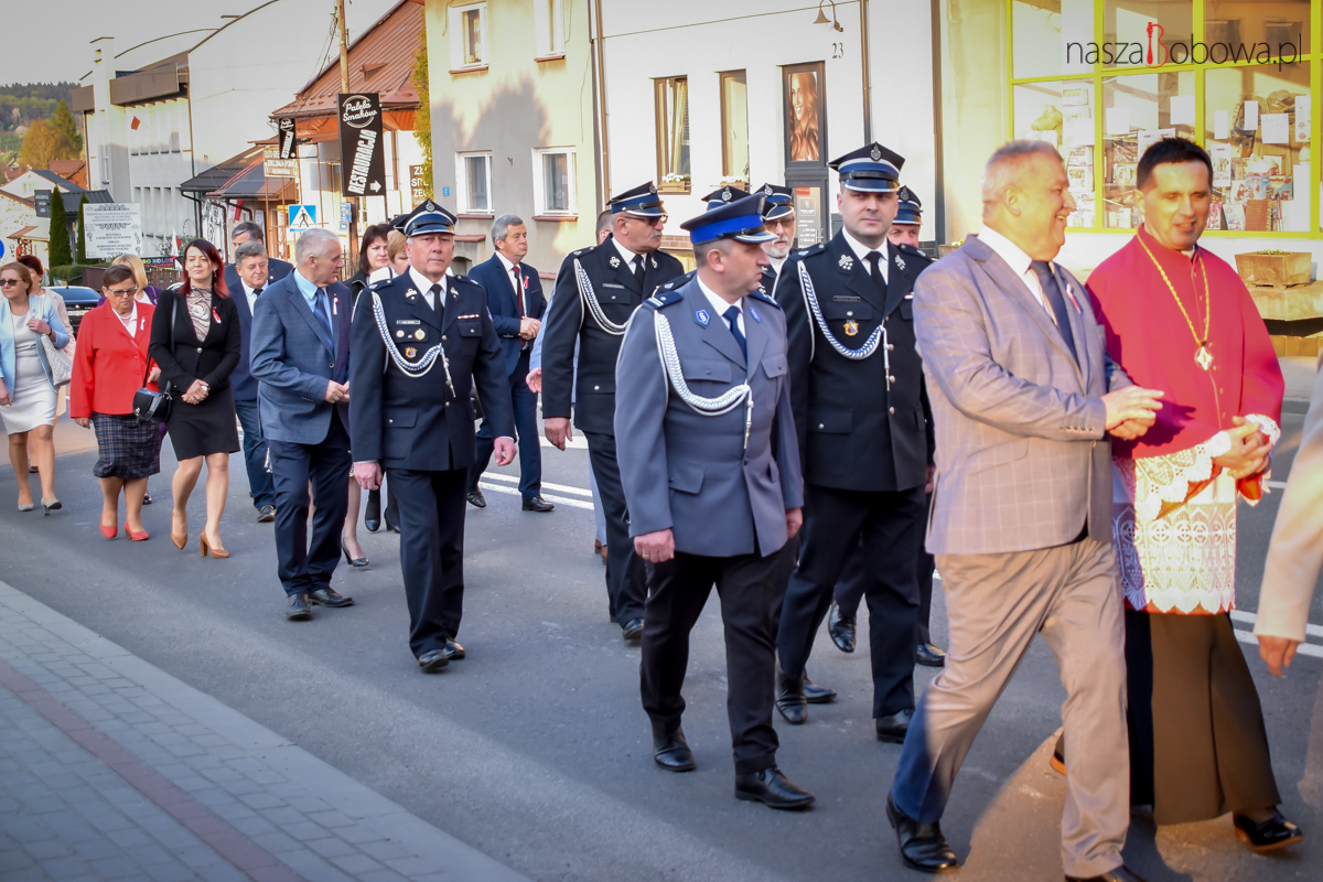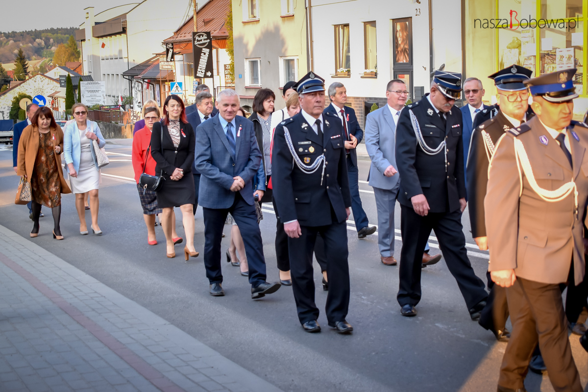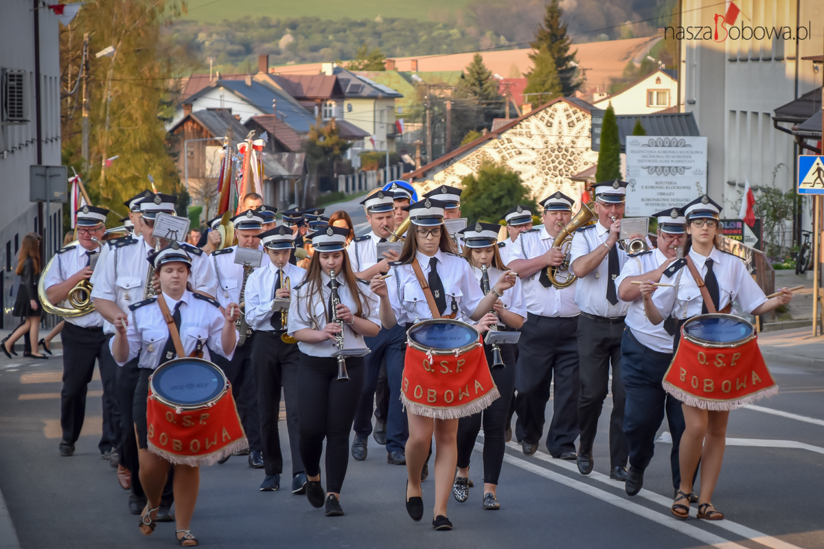 Po uroczystej mszy świętej nastąpił przemarsz pocztów sztandarowych i uczestników uroczystości prowadzonych przez orkiestrę dętą z Bobowej pod kapliczkę św. Floriana znajdującą się na Rynku w Bobowej.
