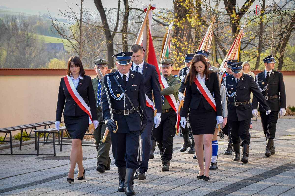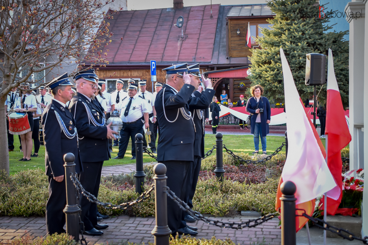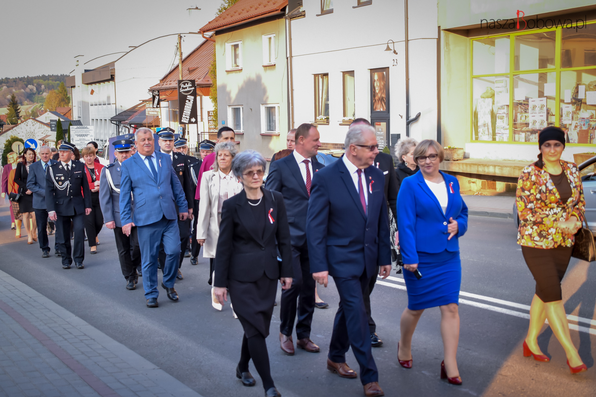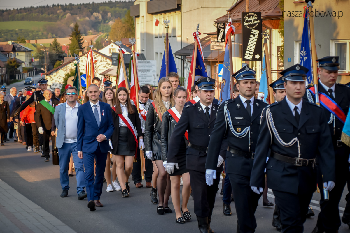 Po uroczystej mszy świętej nastąpił przemarsz pocztów sztandarowych i uczestników uroczystości prowadzonych przez orkiestrę dętą z Bobowej pod kapliczkę św. Floriana znajdującą się na Rynku w Bobowej.