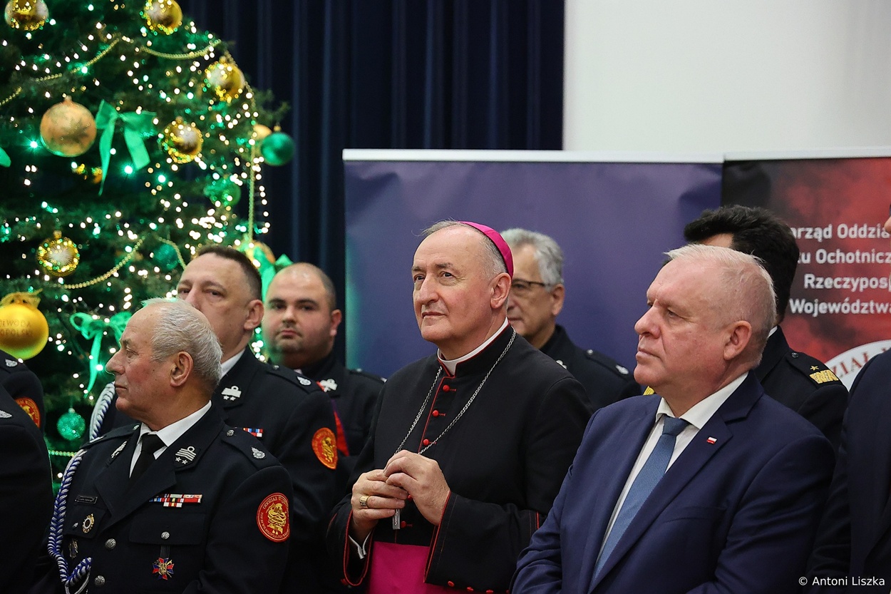 W niedzielę 21 grudnia 2025 roku, w auli im. śp. Wiesława Wody w delegaturze Małopolskiego Urzędu Wojewódzkiego w Tarnowie na Wojewódzkim Spotkaniu Opłatkowym Strażaków spotkali się druhny i druhowie Ochotniczych Straży Pożarnych a także funkcjonariusze Państwowej Straży Pożarnej z całego województwa małopolskiego.