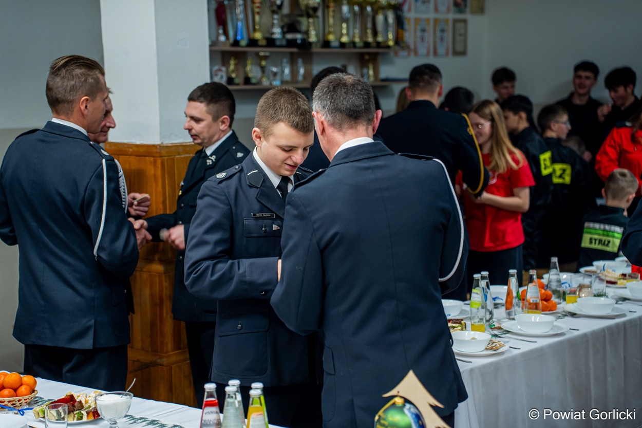 Przybyli strażacy – od członków MDP po druhów seniorów – oraz zaproszeni goście zakończyli spotkanie wspólnym kolędowaniem.