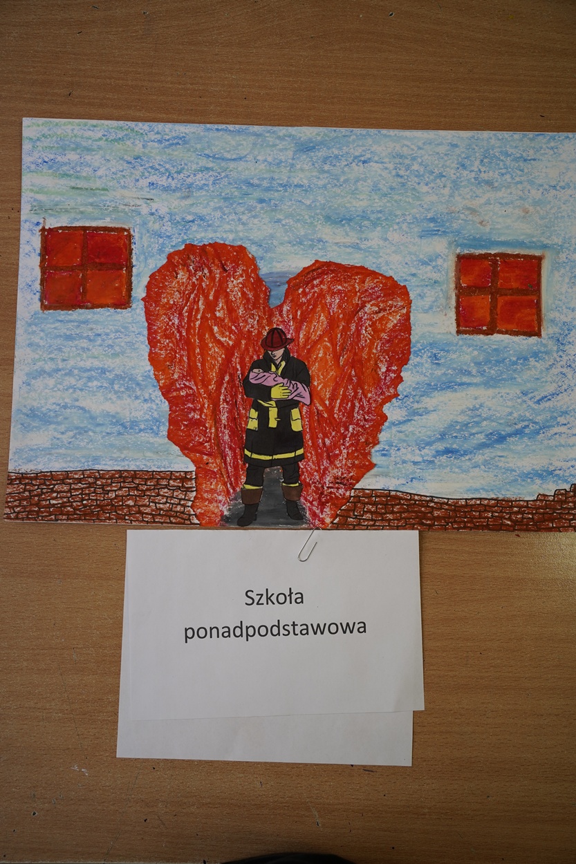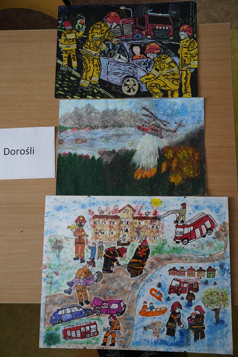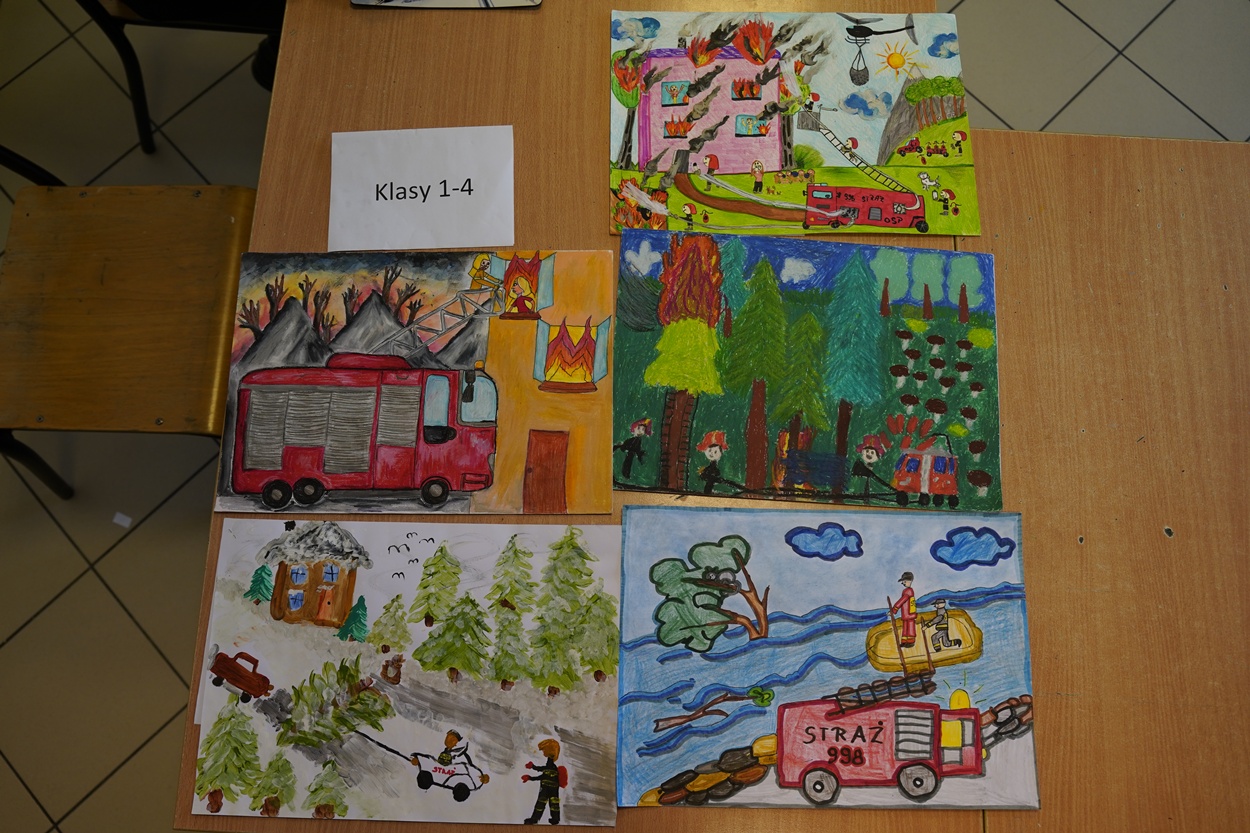 Do oceny na szczeblu powiatowym Ogólnopolskiego Strażackiego Konkursu Plastycznego w Gorlicach, w skutek przeprowadzenia eliminacji gminnych, złożono